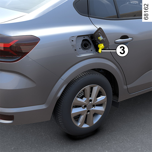 أثناء ملء الخزان، يوجد حامل للسدادة 3 على باب فتحة تعبئة الوقود لحمل السدادة.