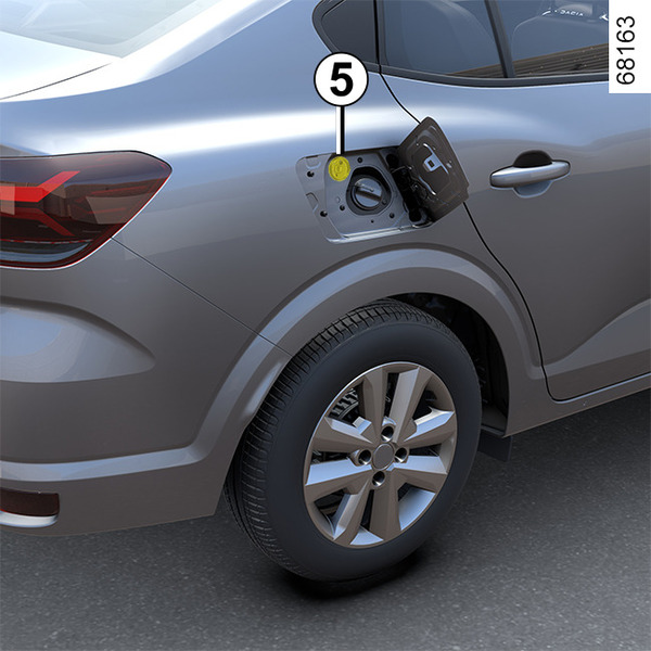 لإغلاقه، اضغط على غطاء خزان الوقود A بيديك، إلى أقصى قدر يمكن أن تصل إليه. في بعض أنواع السيارات، يمكن فتح السدادة 1 باستخدام مفتاح الإشعال. وإلا يتم توصيله بالسيارة باستخدام شريط من البلاستيك. للحصول على تفاصيل حول ملء خزان الوقود، يُرجى الرجوع إلى المعلومات المتوفرة حول "ملء الوقود".