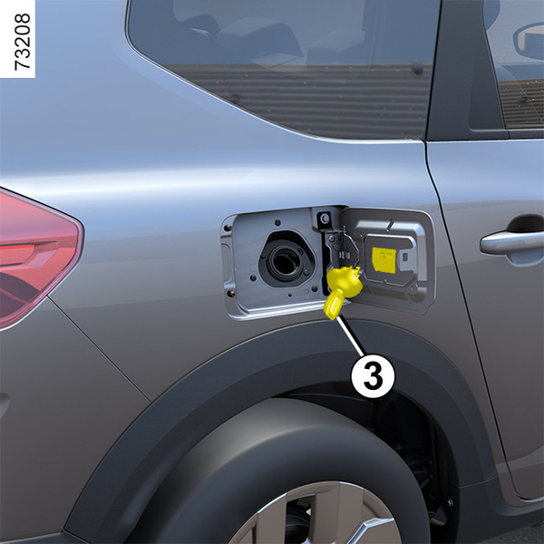 أثناء ملء الخزان، يوجد حامل للسدادة 3 على باب فتحة تعبئة الوقود لحمل السدادة.