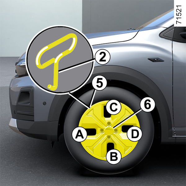 За да го поставите отново на мястото му, подравнете го с вентила 5. Вкарайте фиксиращите куки, започвайки от страната на вентил А, после В и С, като приключите със страната, срещуположна на вентил D.