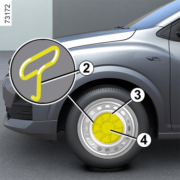 Ако в комплекта с инструменти има болтове за колела, трябва да бъдат използвани единствено за резервното колело: вижте етикета, поставен върху резервното колело.