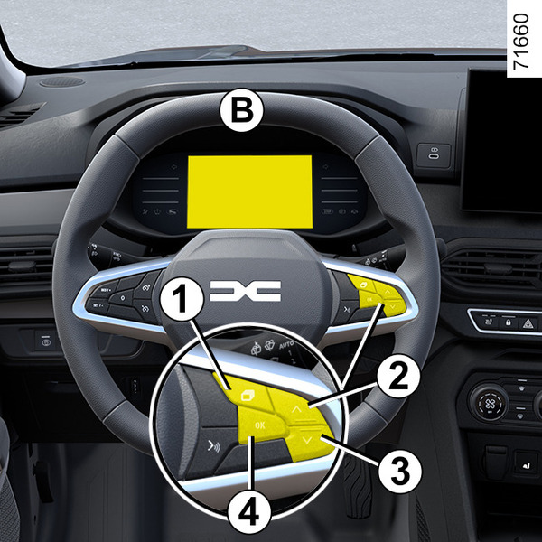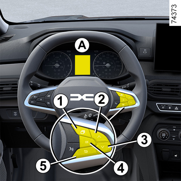 Stisknutím spínače 5 se vrátíte do předchozí nabídky (zobrazení závisí na vybavení vozidla a zemi):