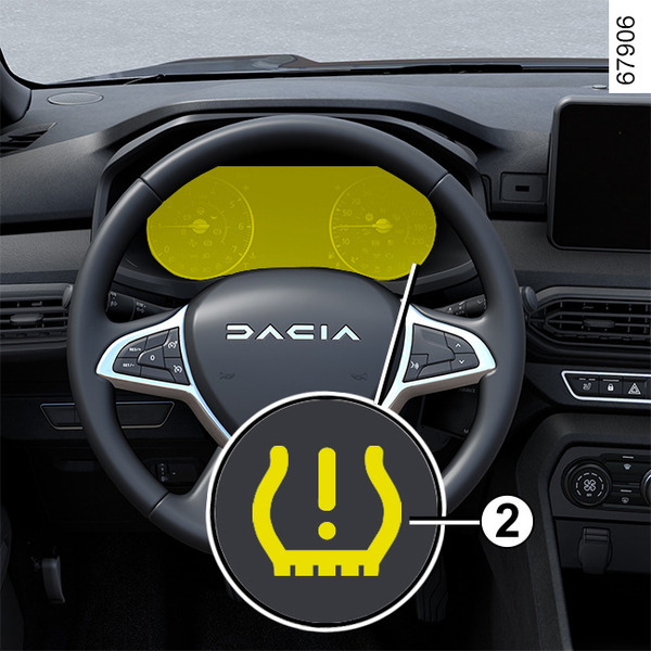 2 lyser for at advisere føreren i tilfælde af utilstrækkeligt dæktryk (fladt dæk, punkteret dæk...).