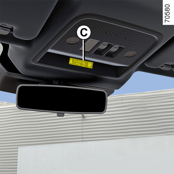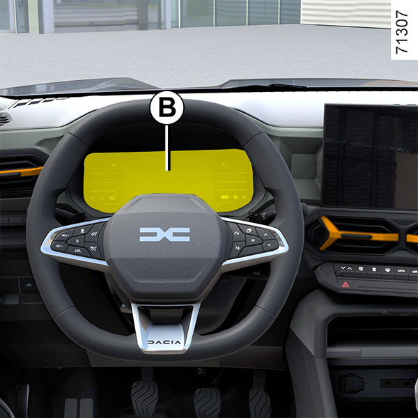 Je nach Fahrzeugausführung erscheinen die Kontrolllampen auf Instrumententafel A oder B und auf Display C.