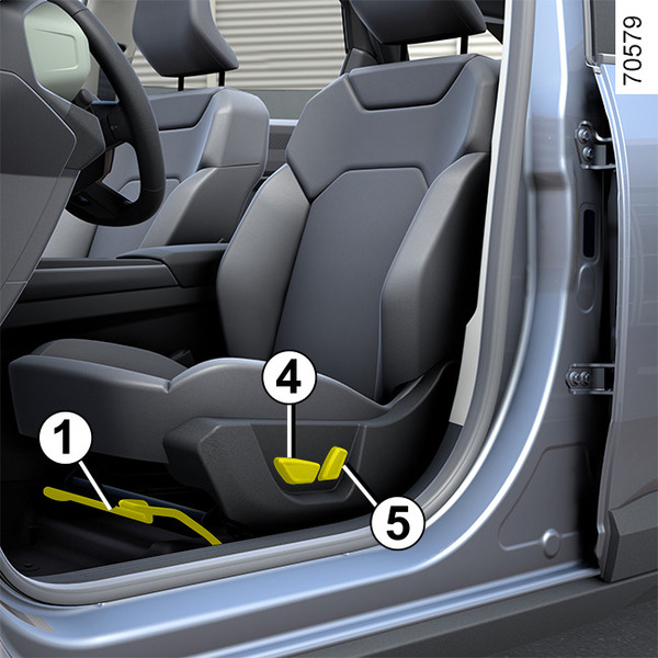 Σηκώστε και κρατήστε το μοχλό 1 για να ξεκλειδώσετε το κάθισμα. Στη θέση που επιθυμείτε, αφήστε το μοχλό και βεβαιωθείτε ότι το κάθισμα έχει ασφαλί- σει σωστά.