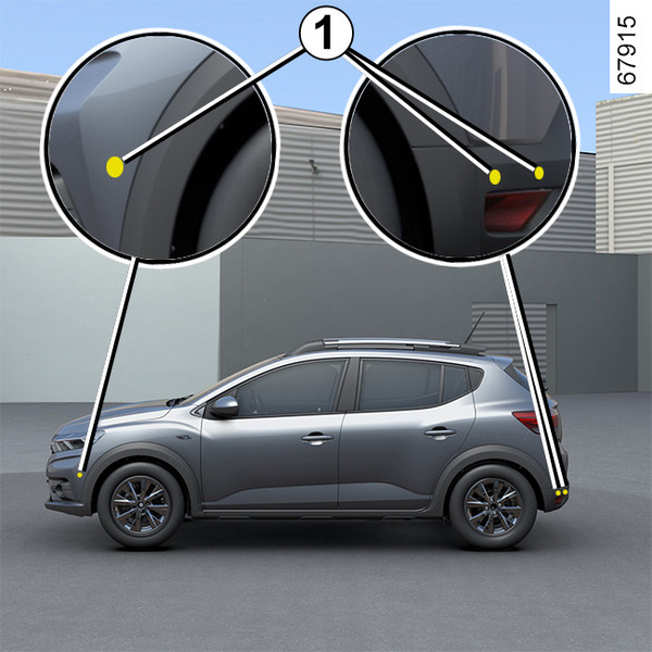 Αυτή η λειτουργία χρησιμοποιεί τους αισθητήρες 1 που είναι εγκατεστημένοι στον εμπρός και τον πίσω προφυλακτήρα και στις δύο πλευρές.