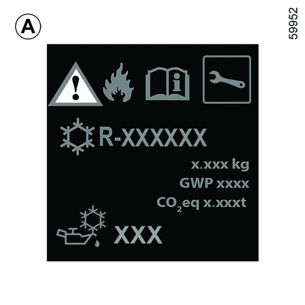 x.xxx kg | (1) Quantity of refrigerant fluid present in the vehicle. |