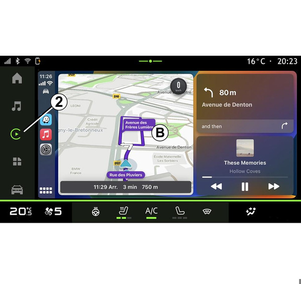 The service is launched on the multimedia system and should be visible from area B. Smartphone replication replaces the "Phone" world