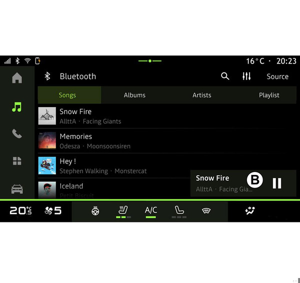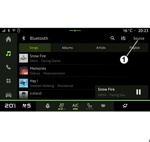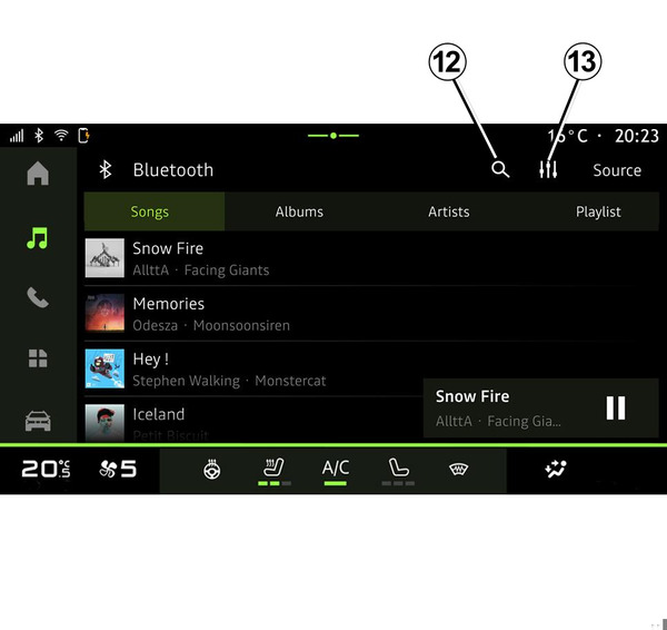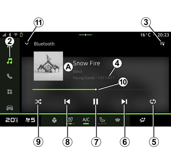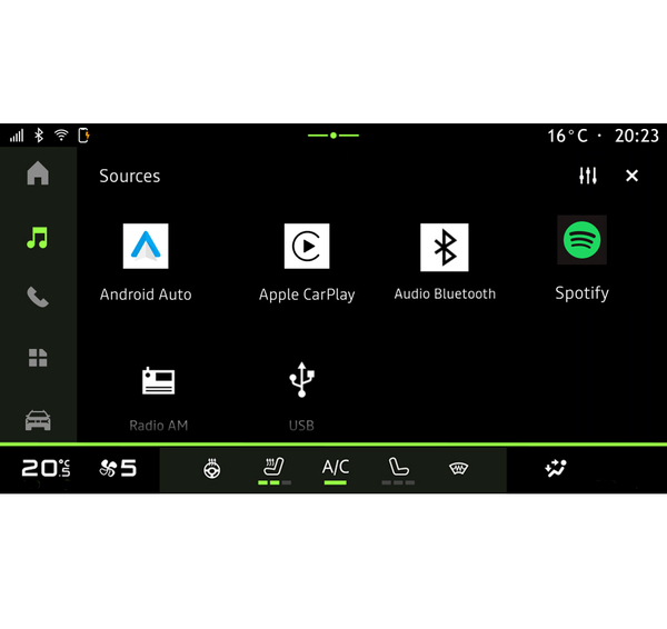 The music sources may vary according to the equipment level. Only the sources that are available are displayed and can be selected on the multimedia screen.