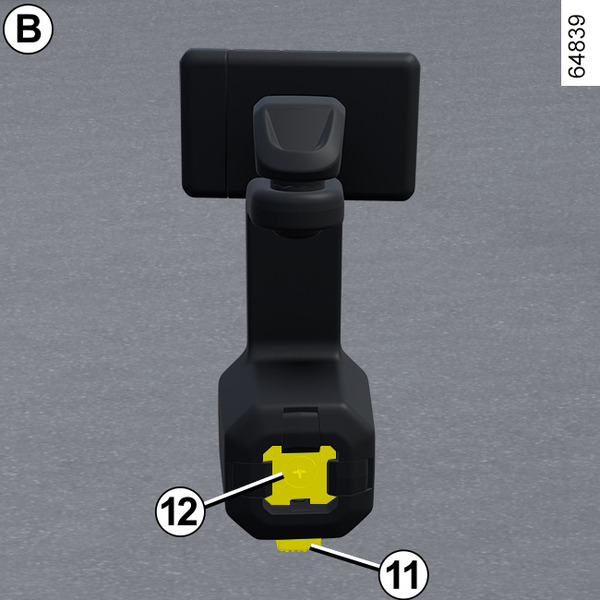 On vehicles that are equipped, to fit the removable telephone holder B, observe the following instructions: