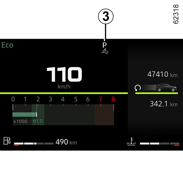 The 3 display on the instrument panel indicates the gear lever position engaged 1.