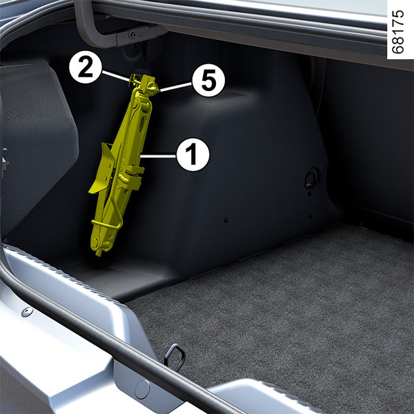 To use the jack, loosen the nut 5. When storing the jack, fold it correctly and replace it in its housing Tighten the nut 5 to secure the jack.