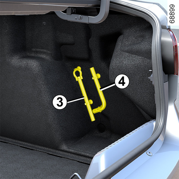 This can be used to lock or unlock the wheel bolts and the towing eye 3.