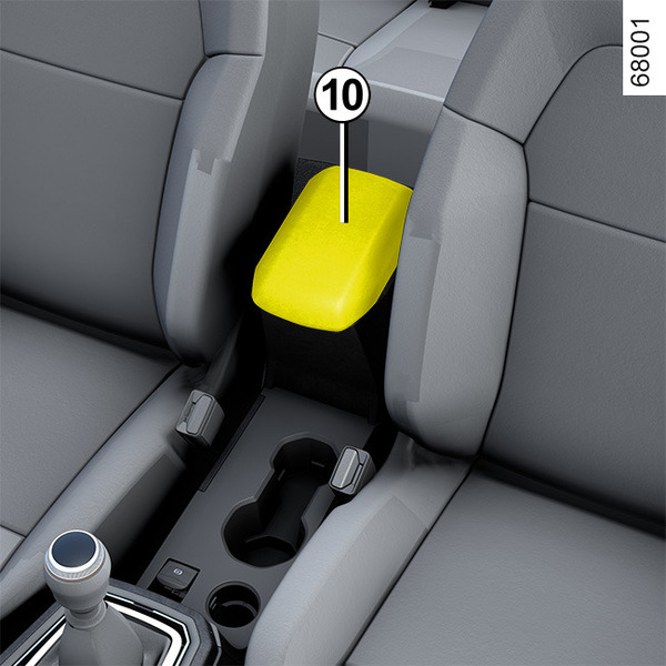 Raise the cover 10 of the central armrest 12 using the catch 11.