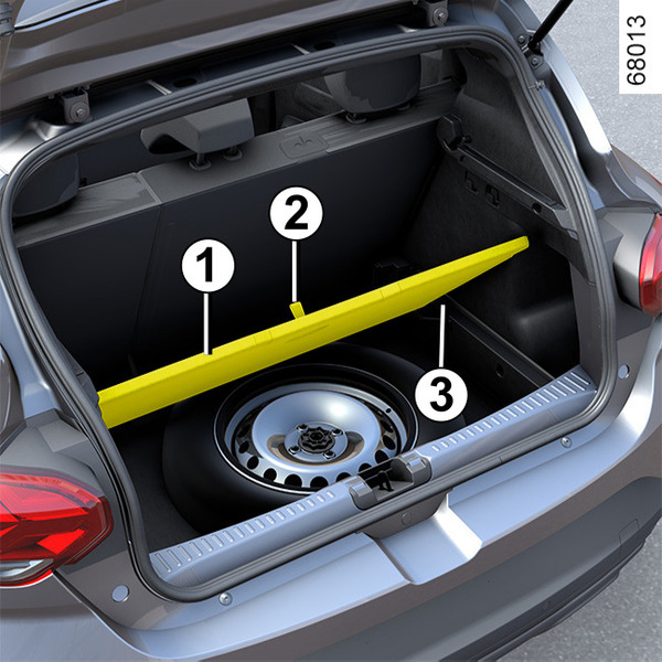 In locked position, it can be used to access the emergency spare wheel located under the floor.