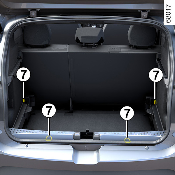 The anchorage points 7 located in the luggage compartment allow loads to be secured.