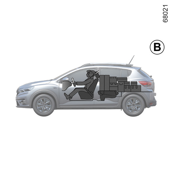 Always position the heaviest items directly on the floor. If the vehicle is equipped with anchorage points on the luggage compartment floor, use them. The luggage should be loaded in such a way that no items will be thrown forward and strike the occupants if the driver has to brake suddenly. Fasten the rear seat belts, even if the seats are not occupied.