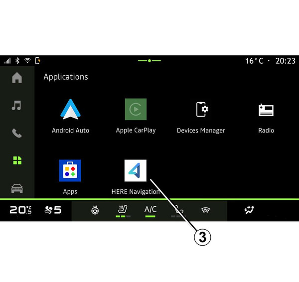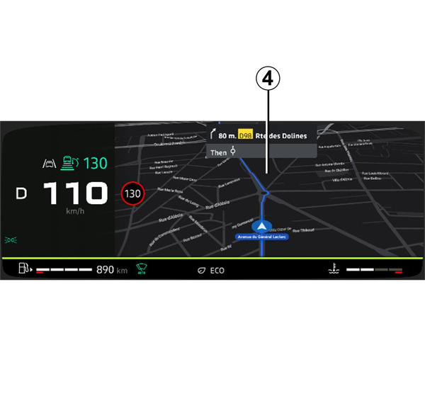 The navigation is only displayed on the instrument panel 4 via the smartphone navigation replication.