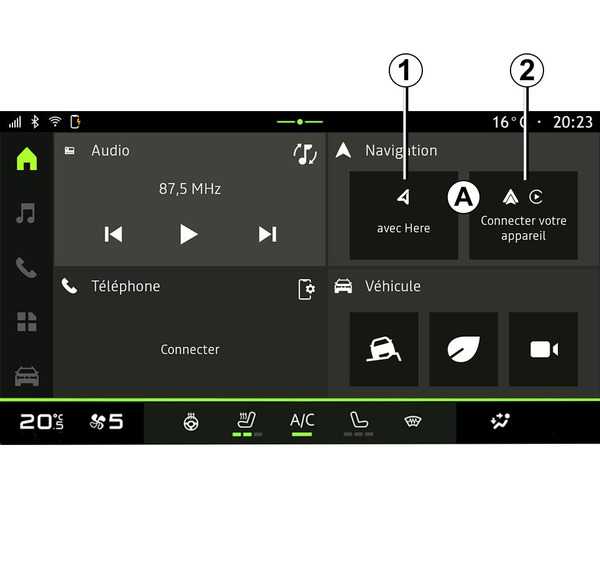 You can also access the smartphone navigation replication from the Navigation widget A in the "Home screen" world