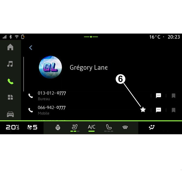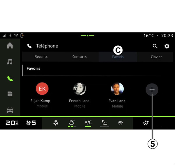 Press "Add a favourite" 5 to add a contact to the "Favourites" list, then follow the instructions displayed on the multimedia screen.