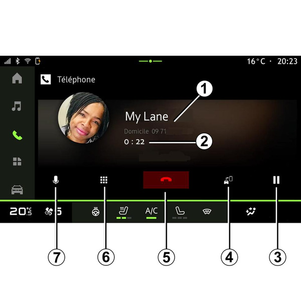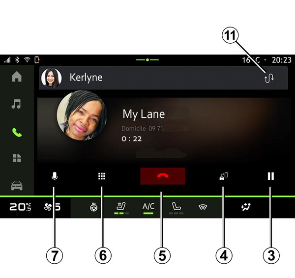 To end the call in progress, hang up by pressing the control 10on the steering wheel or the "End call" button 5 on the multimedia system screen.