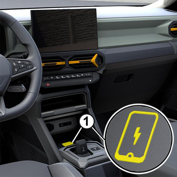 Objects left in the induction charging area 1 may overheat. It is advisable to place them in the other storage areas provided. (storage compartment, sun visor storage compartment, etc.)