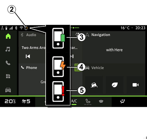 Note: the multimedia system will inform you if the phone charging procedure is interrupted.