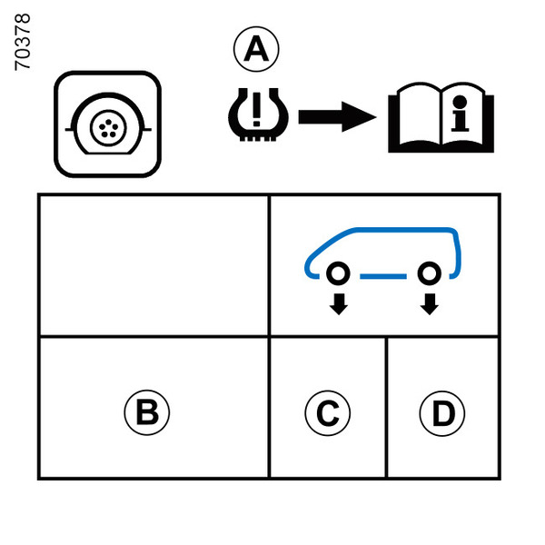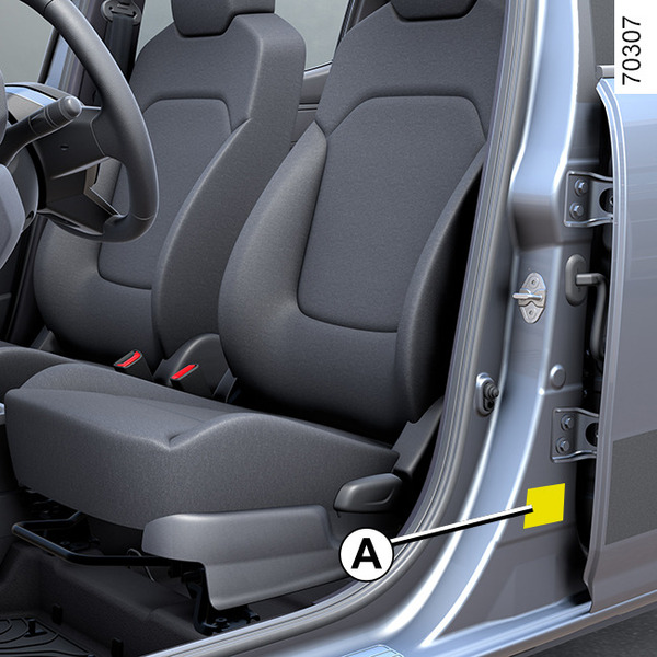 The tyre pressure is indicated on the label A affixed to the front driver. Tyre pressures should be checked when the tyres are cold.