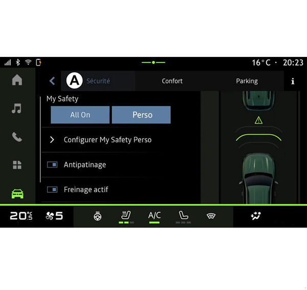 When My Safety "All on" is activated, all your safety aids are activated. This mode is activated by default each time the vehicle is started.
