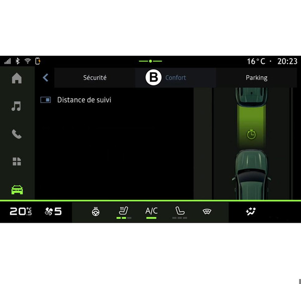 , select "Driving assistance" then the "Security" tab A for safety-related driving aids or the "Comfort" tab B for comfort-related driving aids.