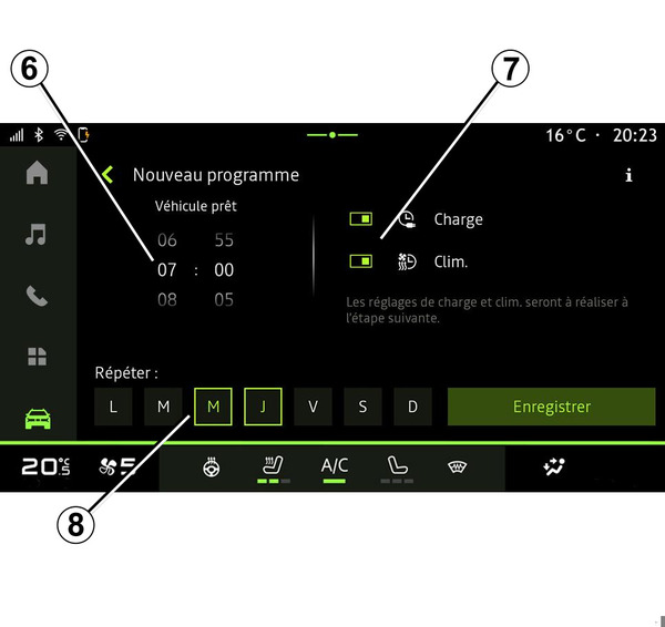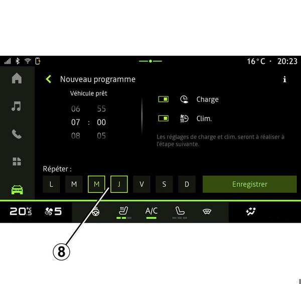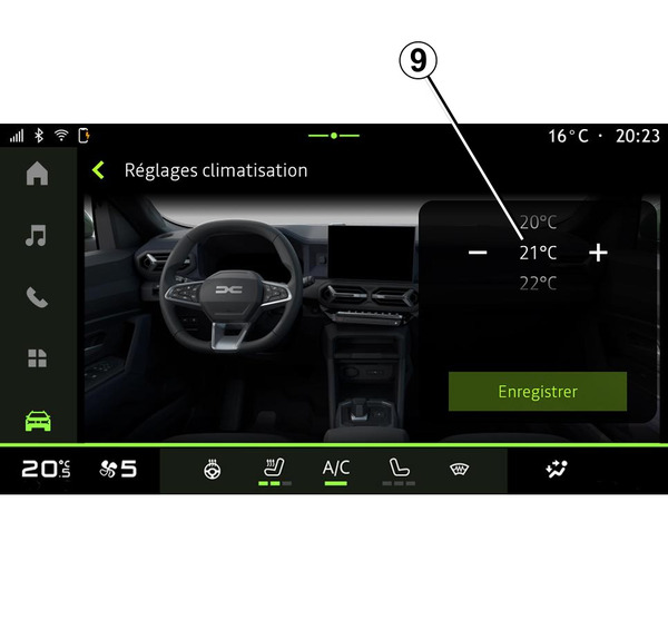From "Climate Settings" 3, adjust the passenger compartment comfort temperature 9, then press "Save" to confirm.