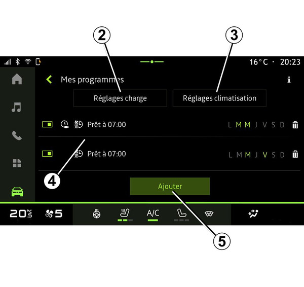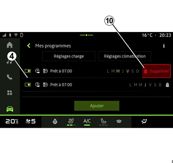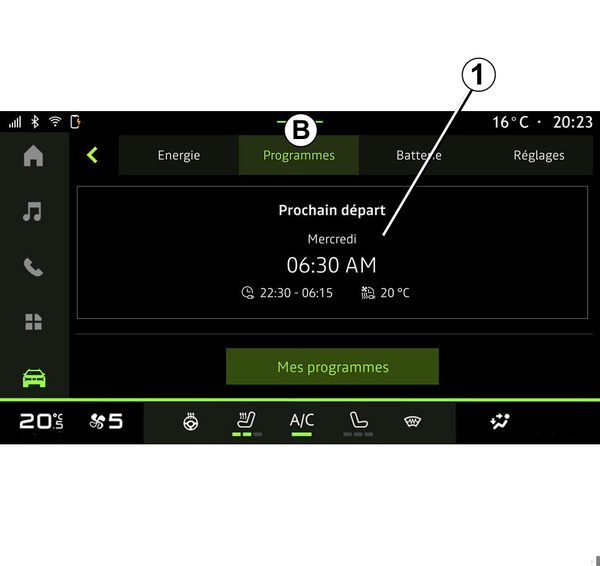 If no other programme has been set, you can set your vehicle comfort and/or charging programme from the "Programmes" tab B, then "My programs" or "Add".