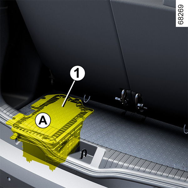La batería secundaria de "12 V" 1 se encuentra ubicada en la parte trasera del vehículo Hybrid; suministra la energía necesaria para desbloquear/bloquear el vehículo y hacer funcionar el equipamiento.