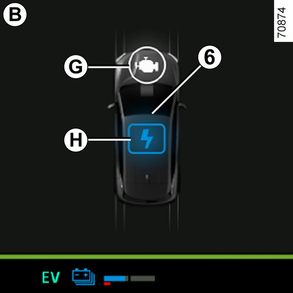 Note: es posible combinar diferentes flujos (por ejemplo, la combinación de los flujos C y D significa que el motor de combustión y el motor eléctrico se utilizan conjuntamente para mover el vehículo).