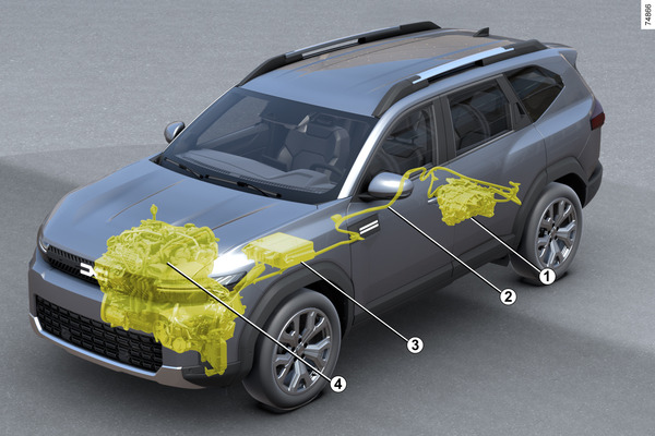 El sistema híbrido utiliza esta energía para alimentar únicamente el motor eléctrico trasero del vehículo. Para más información Batería secundaria de "48 V".