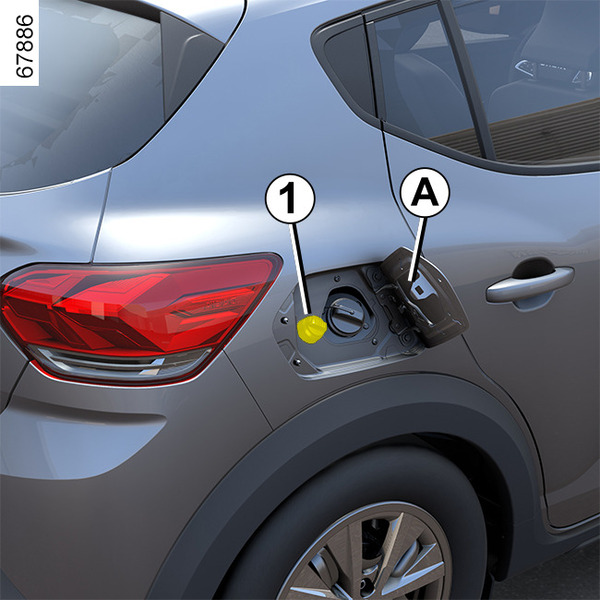 Para llenar el depósito con reactivo, el motor debe estar parado (no solo en modo de espera en el caso de vehículos con la función Stop and Start). Debe cortar el contacto Interruptor de arranque en un vehículo con llave., Botón de arranque en un vehículo con tarjeta.