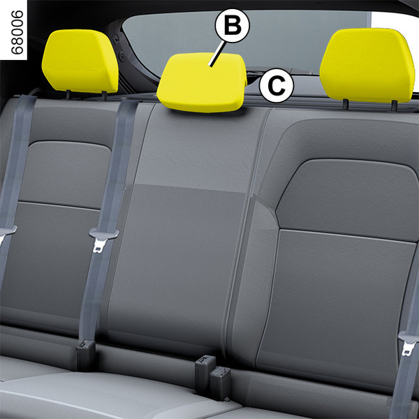 La posición más baja del reposacabezas (posición C ) es únicamente para almacenamiento; no lo coloque así cuando el asiento esté ocupado.