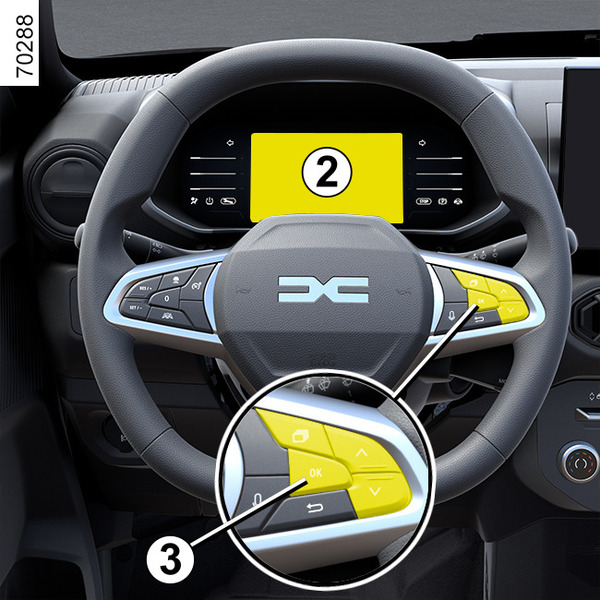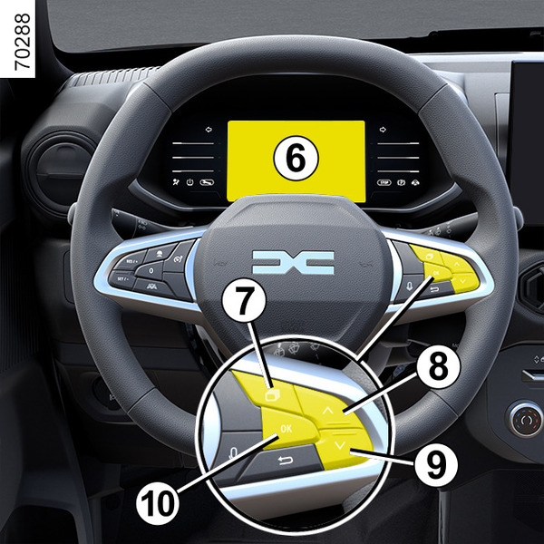 - Con el vehículo parado, pulse el interruptor 7 tantas veces como sea necesario para acceder a la pestaña