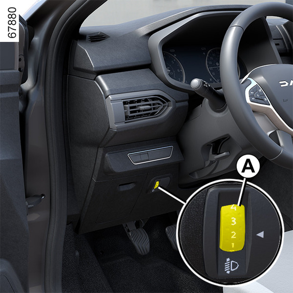 Gire el mando A hacia abajo para bajar los faros y hacia arriba para subirlos.