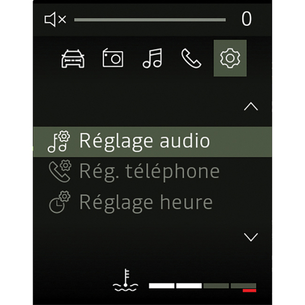 . La pantalla del sistema de radio se muestra en la imagen mientras se encuentra apagado o en modo "Vehículo" con el sonido silenciado.
