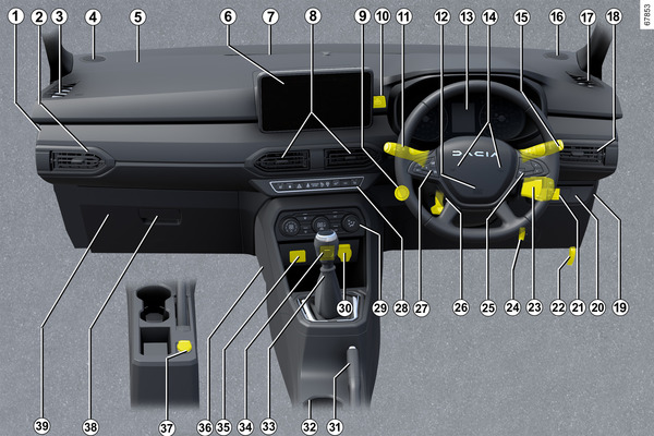 - activación/desactivación de la función Stop and Start o de la ayuda al aparcamiento (según el vehículo);
