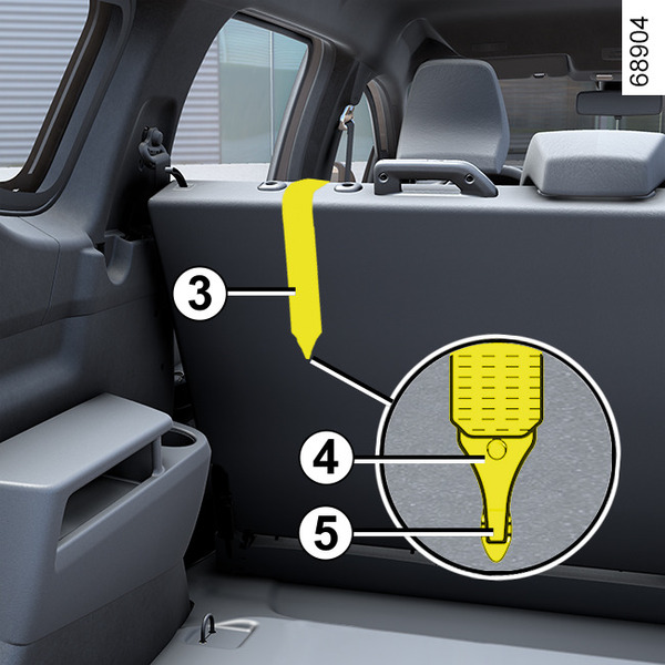 Utilice imperativamente los puntos de anclaje 5 para fijar la cinta superior del asiento para niños.