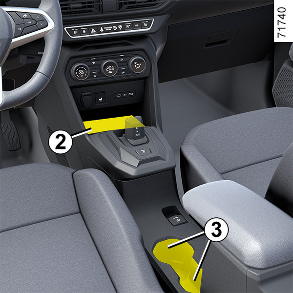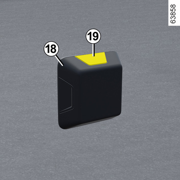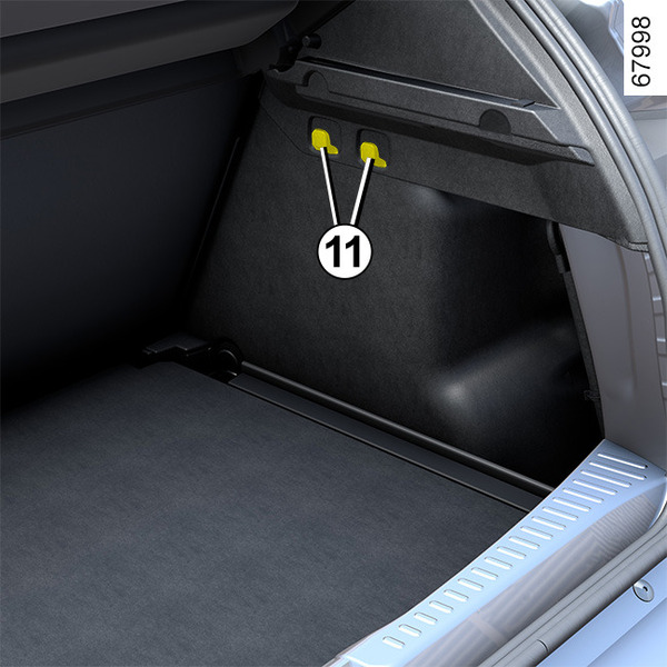 Nämä pidikkeet on suunniteltu kiinnittämään kuutio 15, lamppu 18, kassikoukku 20 (sijaitsee tavaratilassa) tai teknisen osaston hyväksymät lisävarusteet, auton varustetason mukaan.