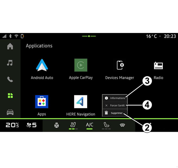 Vous pouvez accéder aux informations de toutes les applications présentes dans votre système multimédia :