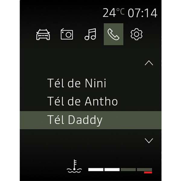 Appuyez sur pour accéder au menu principal, depuis le Monde « Téléphone », sélectionnez le menu « Sélect. tél » à l’aide de sous volant, ou , puis pour valider.