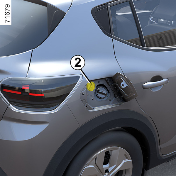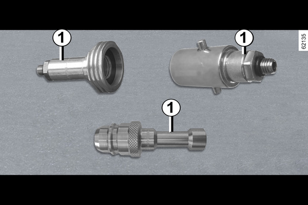 L’adaptateur de remplissage 1 est fourni dans une pochette dans la boîte à gants. Sa présence dans le véhicule dépend du pays de commercialisation.