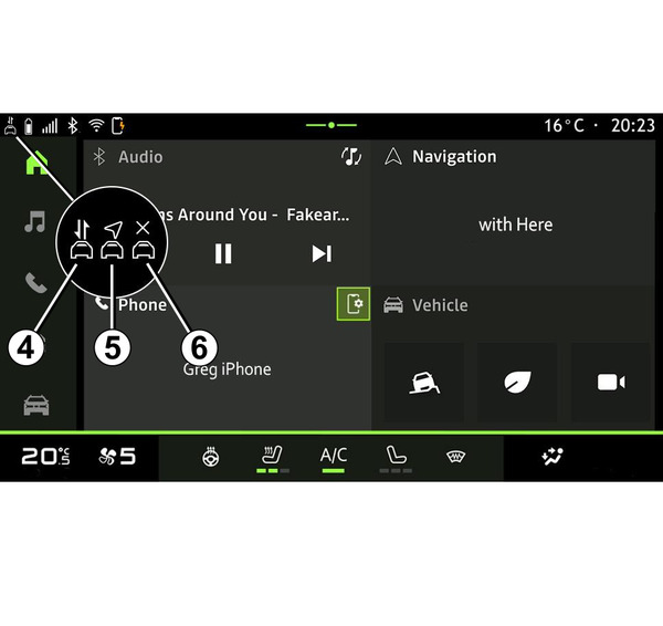 • הפעלה או השבתה של קישוריות Bluetooth® במערכת המולטימדיה;