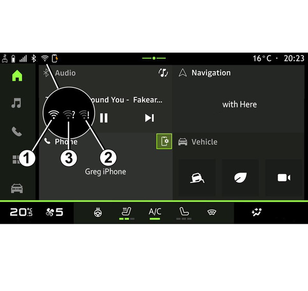 בעת הפעלת מערכת המולטימדיה WIFI, יוצג מידע אודות מצבה באמצעות סמל על סרגל המצב: