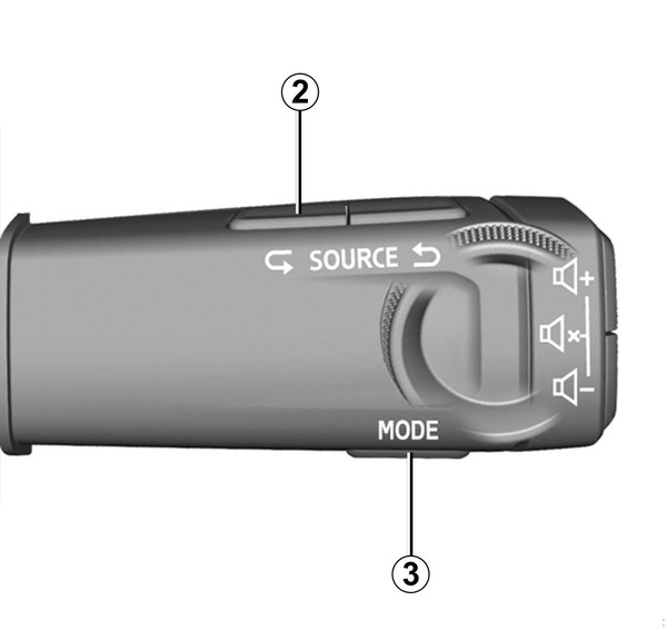 - על המתג Mode3 והמתג השמאלי Source2 במכלול הפקדים שעל מוט גלגל ההגה.