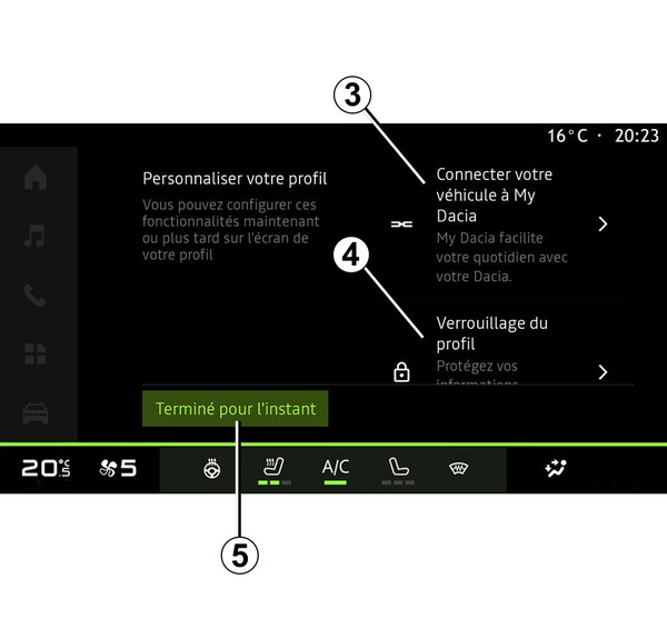 מערכת המולטימדיה מאפשרת לך להתחבר לחשבון My Dacia שלך כדי לנהל פונקציות מסיומות ברכב ולקבל גישה למידע הזה באמצעות הטלפון החכם.